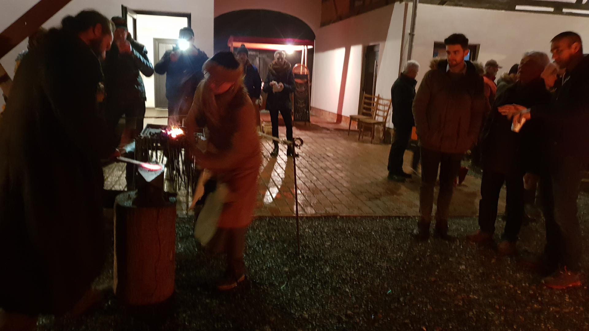 Am Samstag, den 22. Dezember, fand der Mittelalterliche Adventsmarkt 2018 statt. Neben einer Vielzahl an Marktständen aus Nah und Fern waren besondere Höhepunkte die Feuershows von Chariash dem Gaukler und die Auftritte von Novo Modum, die auf vielfältiger Art und Weise ihren Instrumenten mittelalterliche Klänge entzauberten. Auch konnte einem Kunstschmied bei seinen Handwerkskünsten zugesehen werden. |